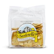 Una ricetta antica e preziosa, un metodo di lavorazione elaborato ed ancora artigianale, ingredienti di assoluta qualità, insieme costituiscono l'unicità e l'originalità dei Sartorelli. Questi Sartorelli sono al gusto mandorla, ideali come snack oppure per una colazione veloce.